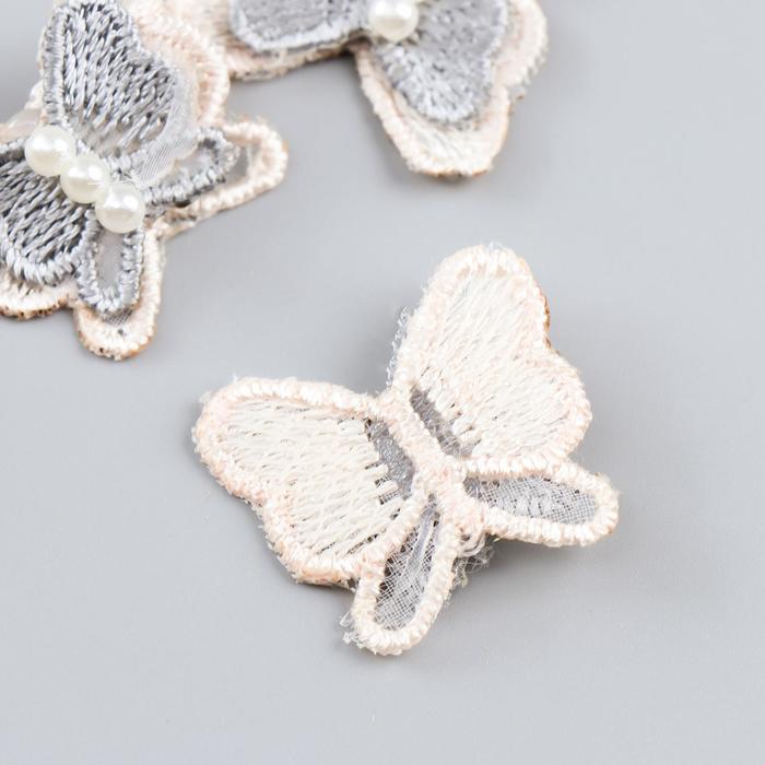 Набор декора для творчества текстиль "Бабочки с жемчужинами" набор 4 шт 3х2,5 см