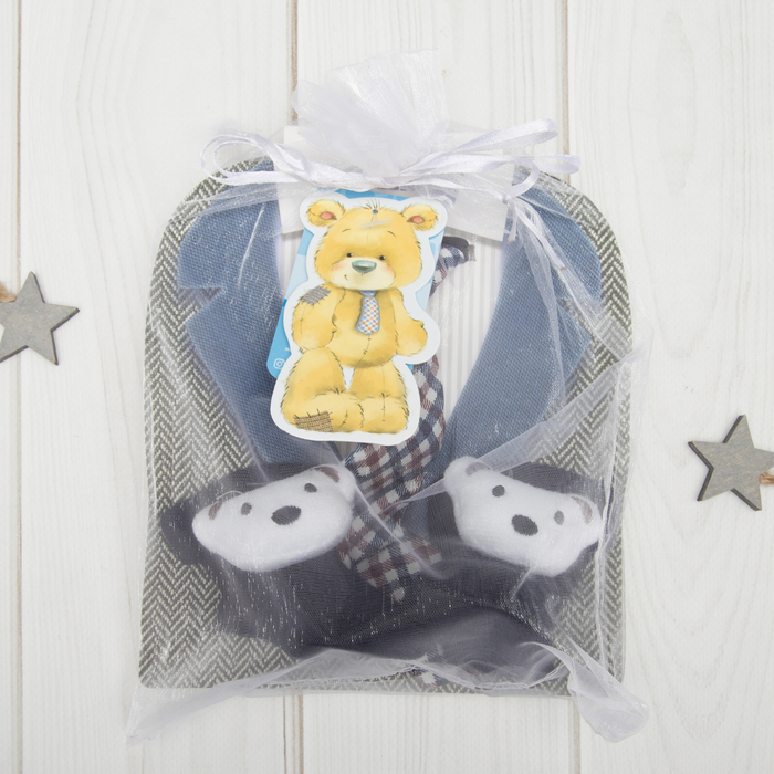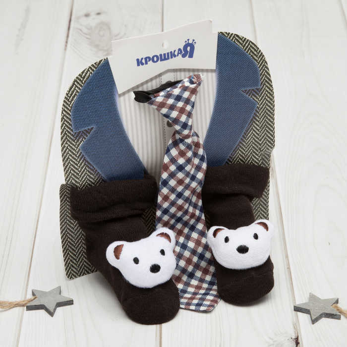 При выборе детской одежды особое внимание родители уделяют не только внешнему виду вещи, но и качеству материала. Носочки для малышей выполнены из 100%-ного хлопка, чтобы ваш ребёнок чувствовал себя комфортно. Милый галстук на резинке станет отличным завершением комплекта и сделает образ мальчика еще более прелестным!