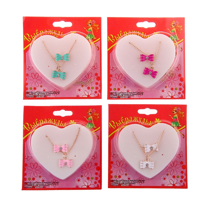 Набор детский "Выбражулька" 2 предмета: кулон, кольцо, бантик, цвет розовый