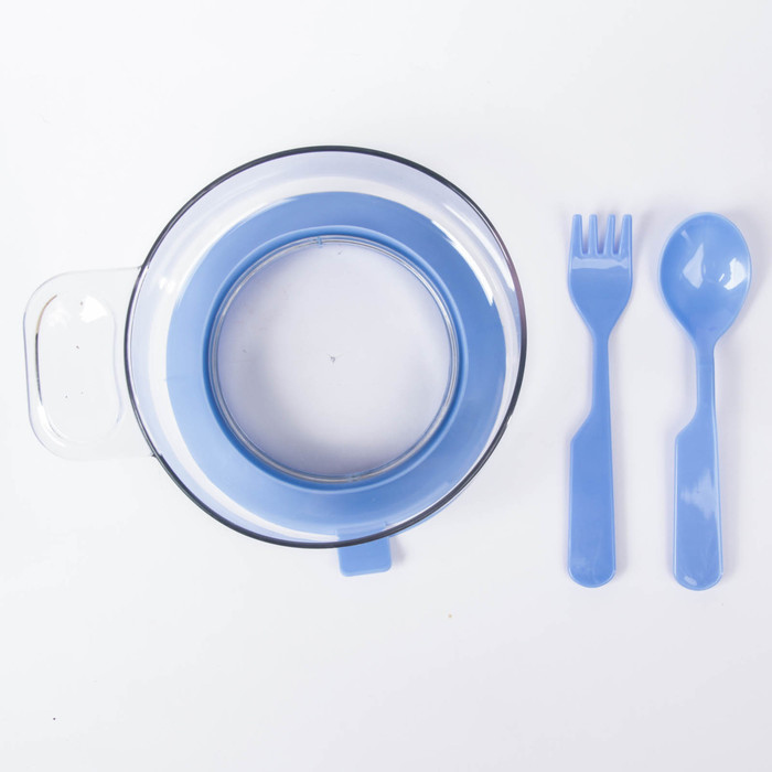 Набор детской посуды, 4 предмета: кружка-поильник «Жираф» 180 мл, миска с ручкой на присоске 400 мл, ложка, вилка, цвет синий