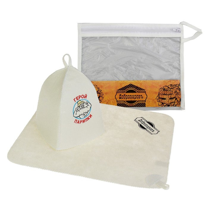 Набор для бани в косметичке "Герой парилки" шапка, коврик