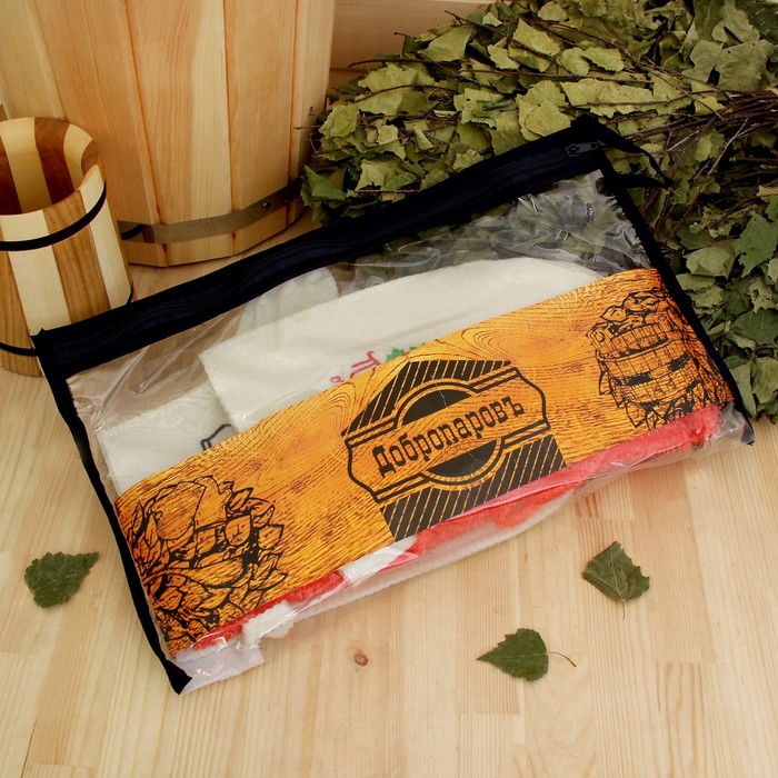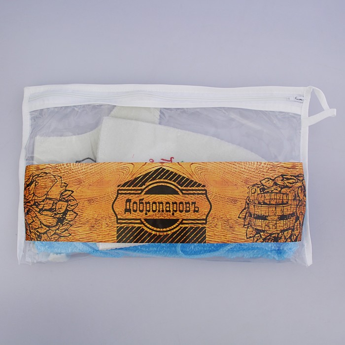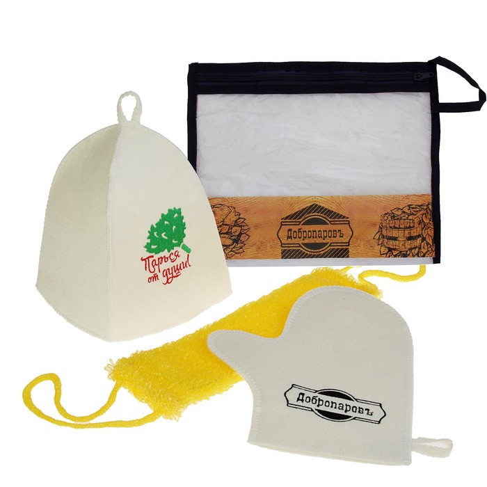 Набор для бани в косметичке "Парься от души" шапка, мочалка, рукавица