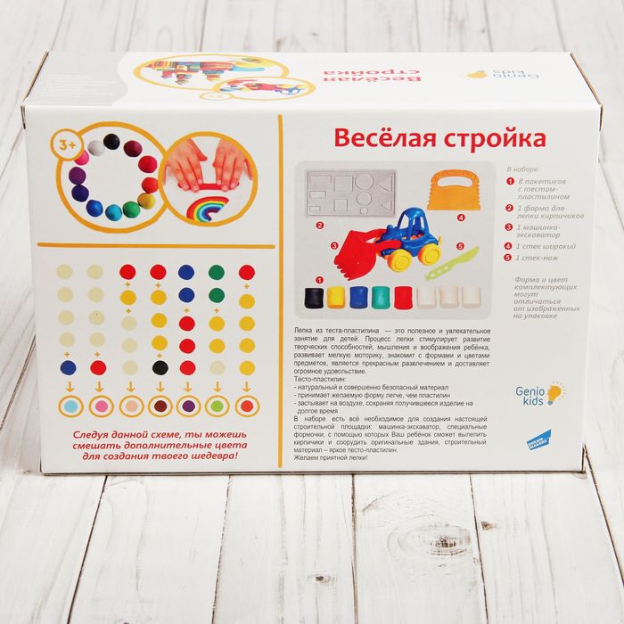 Может быть, именно такой необычный товар, как Набор для детской лепки "Весёлая стройка", раскроет неожиданные способности у вашего ребёнка. И даже если он не станет новым Рафаэлем, то ему, определённо, обеспечена богатая фантазия, креативное мышление и золотые руки.