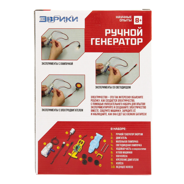Методы воспитания и образования будут меняться бесконечно, но во все времена постоянным остаётся одно ― радость ребёнка от подаренной ему игрушки. Как известно, счастливая улыбка крохи ― самая большая награда для родителей. Набор для опытов «Ручной генератор» — отличный подарок вашему малышу.