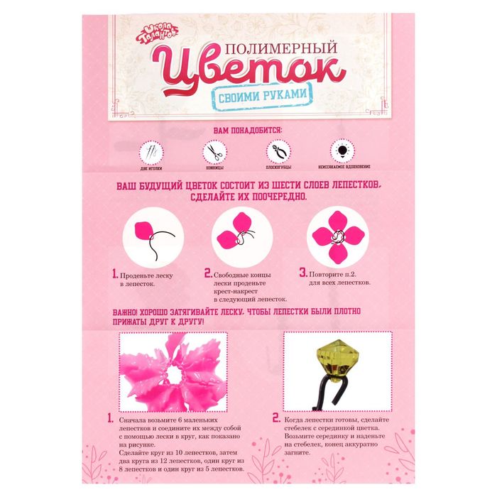Создавайте удивительные флористические композиции с помощью нашего набора для творчества. В комплекте вы найдёте всё необходимое для поделки, а также подробную инструкцию, как правильно собрать цветок.