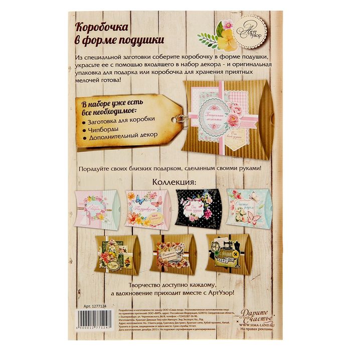 Набор для создания коробки-подушки "Бесценные моменты", 14 х19 см