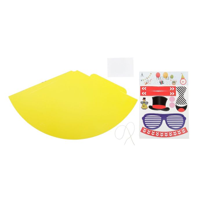 Яркий колпак — это стильный атрибут любой вечеринки. В комплект входят элементы, которые позволят сделать праздничный головной убор и украсить его.