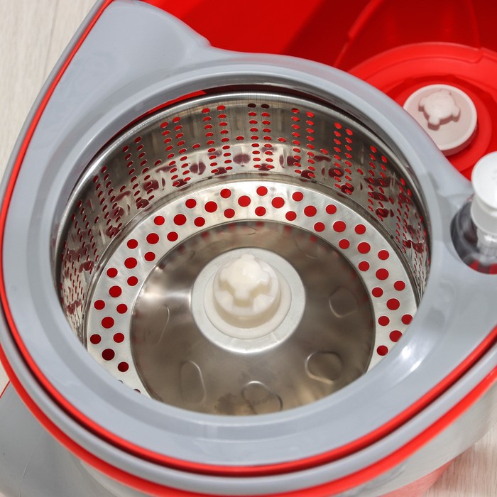 Ведро для механического отжима позволяет забыть о необходимости наклоняться и пачкать руки в грязной воде. Подвижная часть ручки швабры легко опускается и обеспечивает вращение насадки как в отсеке для полоскания, так и в центрифуге для отжима. Вы без труда можете контролировать уровень влажности моющей части за счет количества вращений. Металлическая центрифуга отжима, более долговечна, чем пластиковая.