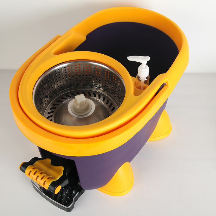 Набор для уборки: швабра, ведро с педальным отжимом, металлическая центрифуга, цвет сиреневый