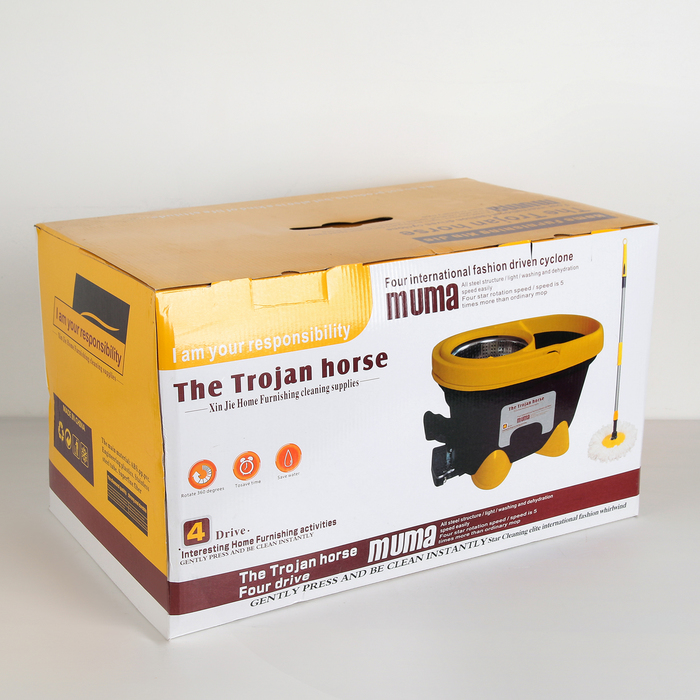 Ведро для механического отжима позволяет забыть о необходимости наклоняться и пачкать руки в грязной воде. Вставьте швабру в отсек для отжима и создайте вращение, нажимая на педаль. Вы без труда можете контролировать уровень влажности насадки за счет количества вращений.