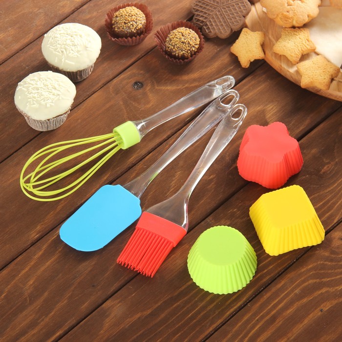 Набор для выпечки 12 предметов "Лёд": 9 форм 7х6 см, лопатка 25 см, кисть 22 см, венчик 25 см
