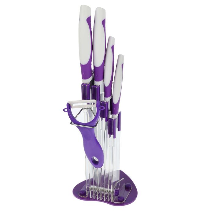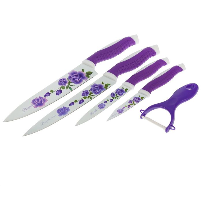Набор "Фиалка", 5 предметов: 4 ножа 8/13/14,5/17х4 см, овощечистка, на подставке