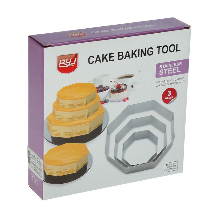 Набор форм для выпечки 20х4,5 см "Восьмиугольник", 3 шт