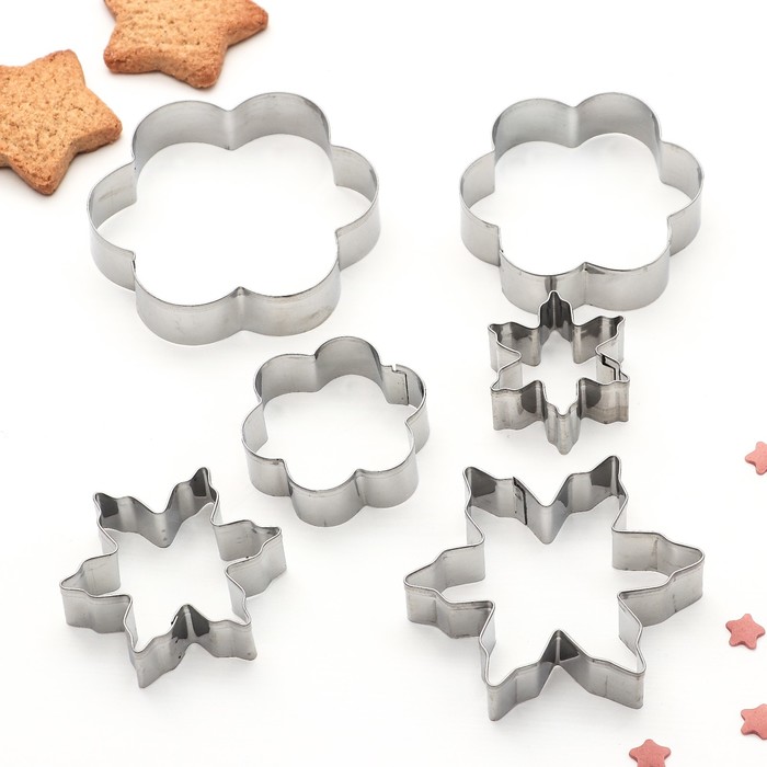 Набор форм для вырезания печенья "Снежинка, цветок", 6 шт
