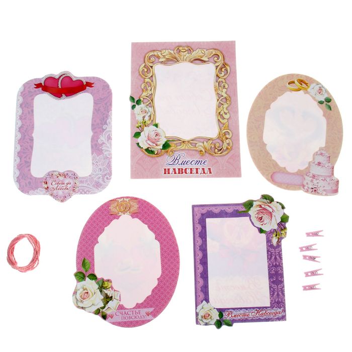 Как оригинально украсить интерьер, оформить пустую стену или сделать сюрприз любимым людям? Всё просто! Достаточно взять набор фоторамок "Свадьба", 5 штук, который включает в себя всё необходимое для создания уникальной композиции: стильные рамки, верёвку 114 см, прищепки. С его помощью легко создать неповторимый интерьер, даже если вы никогда не занимались дизайном.