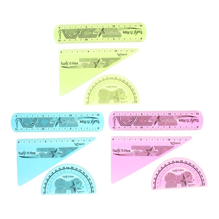 Набор геометрический TWIST'N FLEX линейка 15см, угольник, транспортир, европодвес, микс может понадобиться при изучении любого школьного предмета. Провести прямую линию и начертить отрезок на уроке математики? Легко! Подчеркнуть подлежащее, сказуемое или деепричастный оборот в домашнем задании по русскому языку? Проще простого!