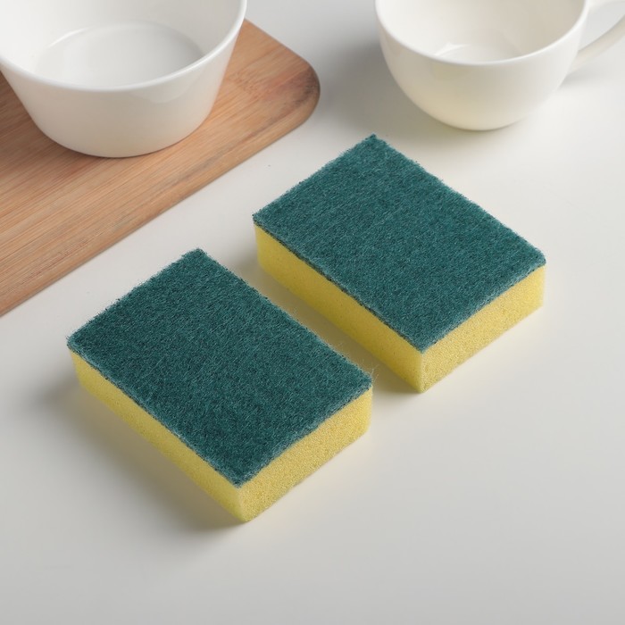 Губка для посуды имеет два слоя. Первый — абразивный. Второй — это поролон с антибактериальным покрытием, не оставляющий следов и повреждений, Именно он создаёт много пены для быстрого и качественного удаления грязи.
