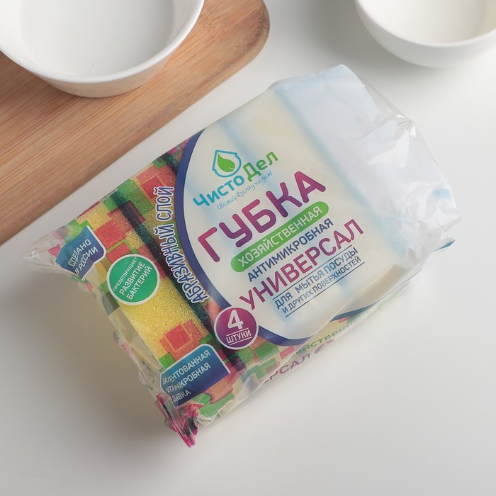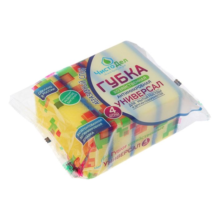 Набор губок для посуды, антибактериальные "Универсал" 4 шт