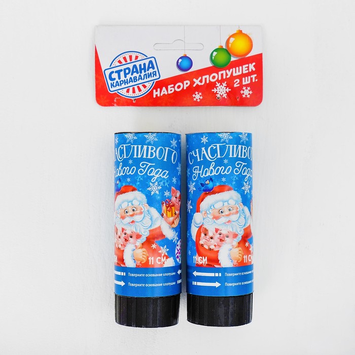Набор хлопушек 2шт "Счастливого Нового Года" (конфетти+ фольга серпантин) 11см