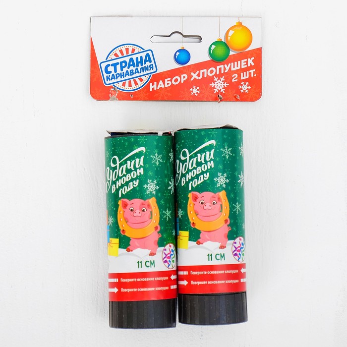 Набор хлопушек 2шт "Удачи в Новом Году" (конфетти+ фольга серпантин) 11см