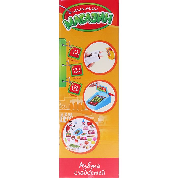 Набор игровой "Азбука сладостей": прилавок, сканер, кредитная машина/карточка, деньги, товары, высота 76 см, 33 предмета, со световым и звуковым эффектом, работает от батареек