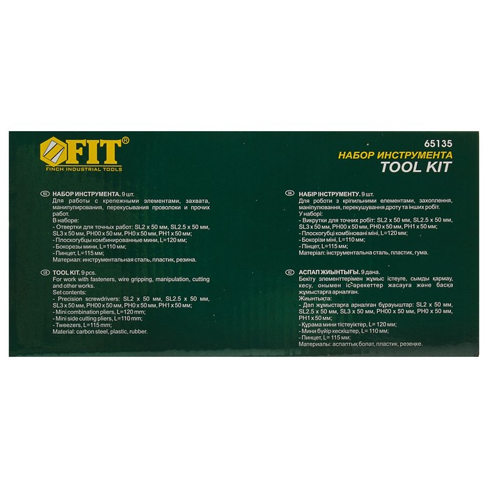 Набор инструмента FIT, для точных работ, 9 шт. и матерчатый чехол