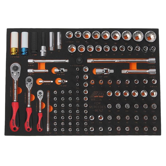 Набор инструмента универсальный JTC, комплектация Mercedes Benz, в ложементе, 116 предметов 242869