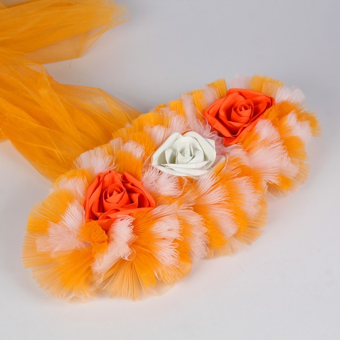 Набор из букета с большими латексными цветами с фатином + фата по капоту 2,3 м оранжевый