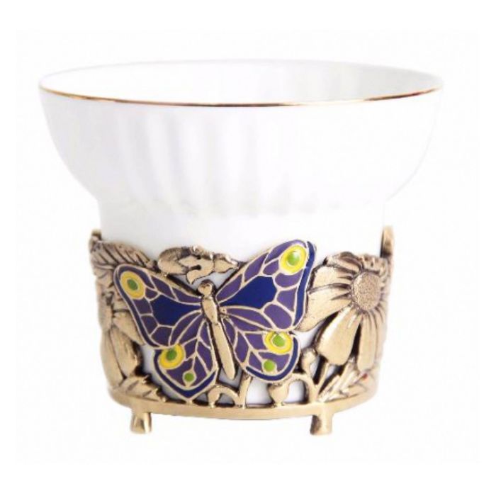 Набор из шести чашек с френч-прессом «Бабочки и цветы» в большой шкатулке с накладкой «Истинная женщина»