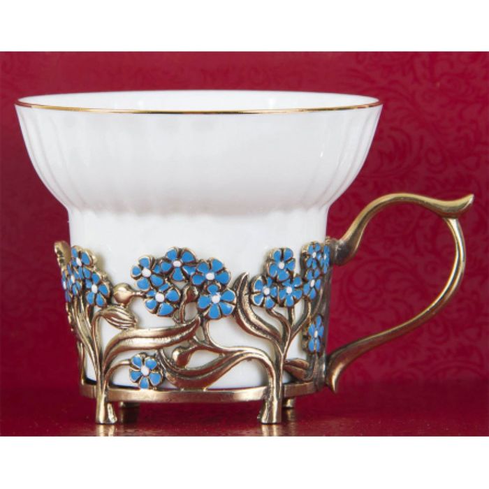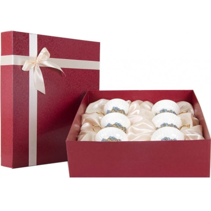 Набор из шести фарфоровых чашек «Незабудки» в картонном футляре