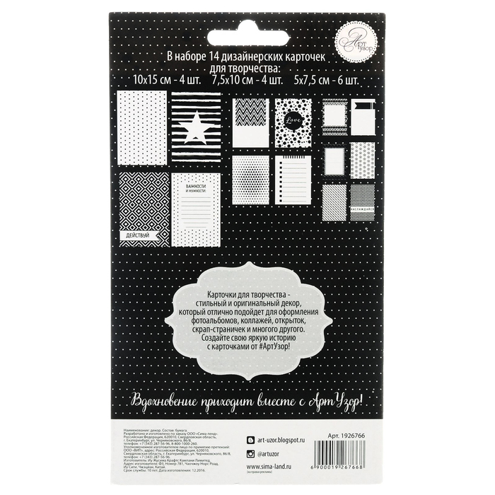 Набор карточек для творчества "Черно-белая гармония", 10 х 17,5 см