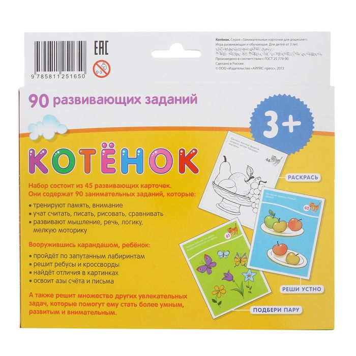 Невозможно представить нашу жизнь без праздников! Мы всегда ждём их и предвкушаем, обдумываем, как проведём памятный день, тщательно выбираем подарки и аксессуары, ведь именно они создают и поддерживают торжественный настрой. Набор карточек "Котёнок", 90 развивающих заданий — это отличный выбор, который привнесёт атмосферу праздника в ваш дом!