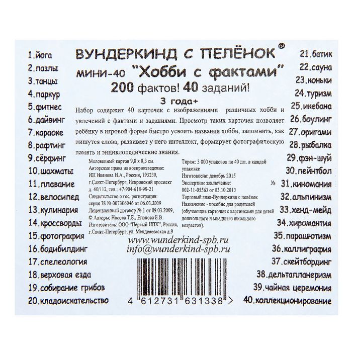 Изучая различную литературу, вы можете получить очень много ценной информации, расширить кругозор, словарный запас и стать эрудированным. Кроме того, книга — это отличный способ расслабиться и с удовольствием провести время. Пусть Набор карточек "Мини-40. Хобби" станет очередным полезным изданием в вашей коллекции.