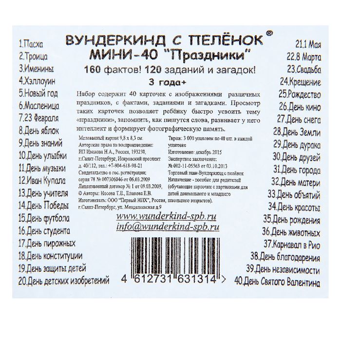 Изучая различную литературу, вы можете получить очень много ценной информации, расширить кругозор, словарный запас и стать эрудированным. Кроме того, книга — это отличный способ расслабиться и с удовольствием провести время. Пусть Набор карточек "Мини-40. Праздники" станет очередным полезным изданием в вашей коллекции.