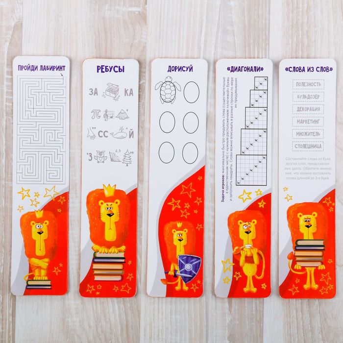 Набор картонных закладок "Вперрррёд! К знаниям" с играми (5 шт)