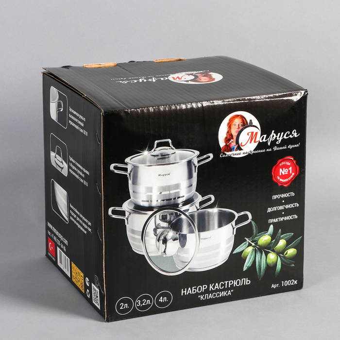 Набор кастрюль "Классика", 3 предмета: 2 л, 3,2 л, 4 л, стеклянная крышка