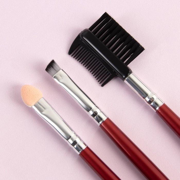 Макияж — это настоящее искусство, требующее качественных инструментов. Кисточки в наборе помогут полностью подготовиться к выходу: нанести тон и корректор, тени, подводку, блеск или помаду для губ, расчесать брови и ресницы. Щетина из нейлона не впитывает материал и существенно сокращает его расход, а удобный чехол сохранит приспособления от повреждений и позволит взять их в дорогу.