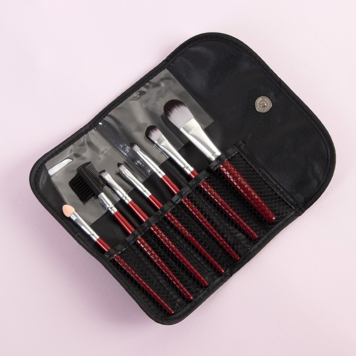 Набор кистей для макияжа, 7 предметов, на кнопке, цвет фиолетовый