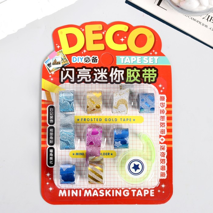 Набор клейкой ленты пластик 9 шт+держатель для скотча, 1,2 смх1 м МИКС 15х10х2 см