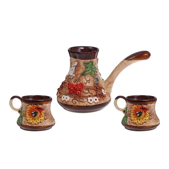 Набор кофейный "Деревенька" лепка, 0,6 л турка, 0,2 л чашки
