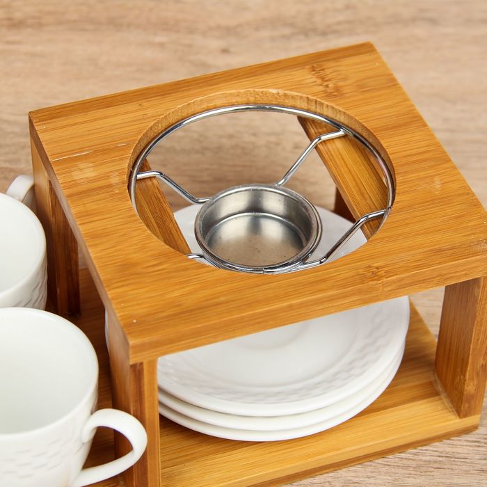 Набор кофейный "Эстет", 9 предметов: чайник 800 мл, кружки 150 мл, на подставке с подогревом
