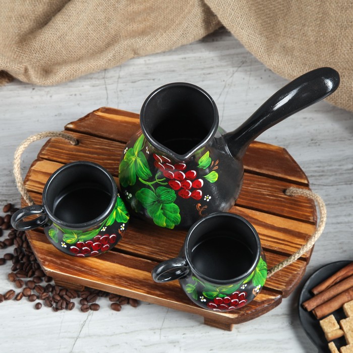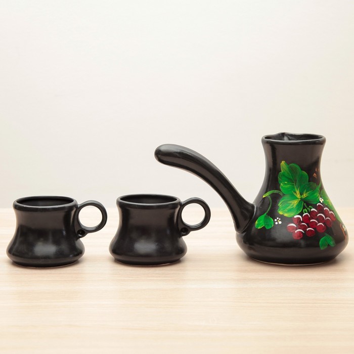 Набор кофейный "Рябинка", чёрный, глазурь 0,5 л, 0,25 л