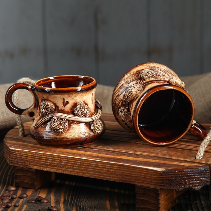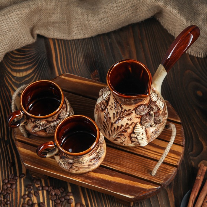 Все предметы набора изготовлены вручную из керамики. Этот экологически чистый материал легко переносит высокие и низкие температуры, устойчив к царапинам, потёртостям, не имеет запахов и примесей. Керамическая посуда хорошо держит тепло напитка, не влияя на его вкус.