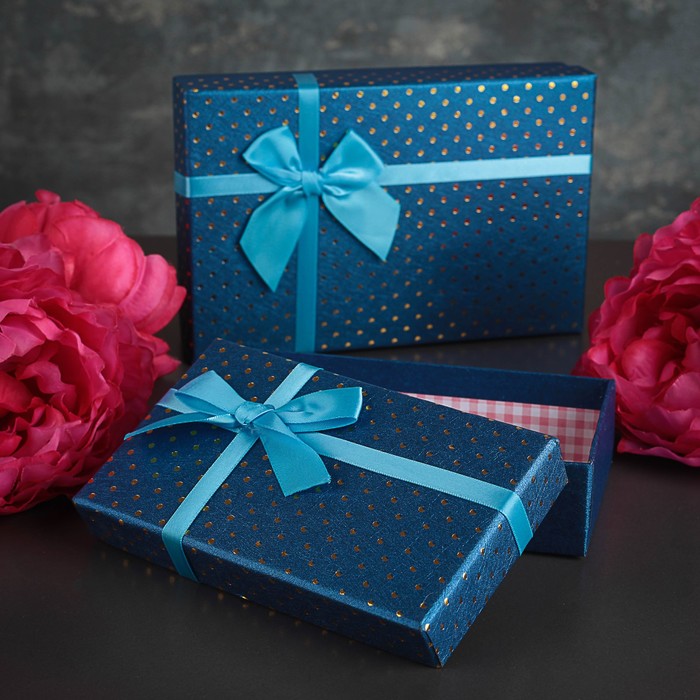Набор коробок 2в1 "Горошек", синий, 21 х 14 х 4,5 - 17 х 9,8 х 4,5 см — настоящая классика подарочной упаковки.