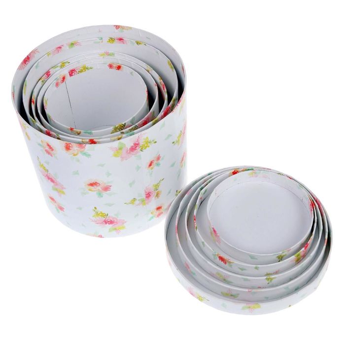Набор коробок 5 в1 круг «Акварельные цветы», 14 х14 х13/ 16 х 16 х14/ 18 х18 х15/ 20 х20 х17,5/ 22х22х19см.