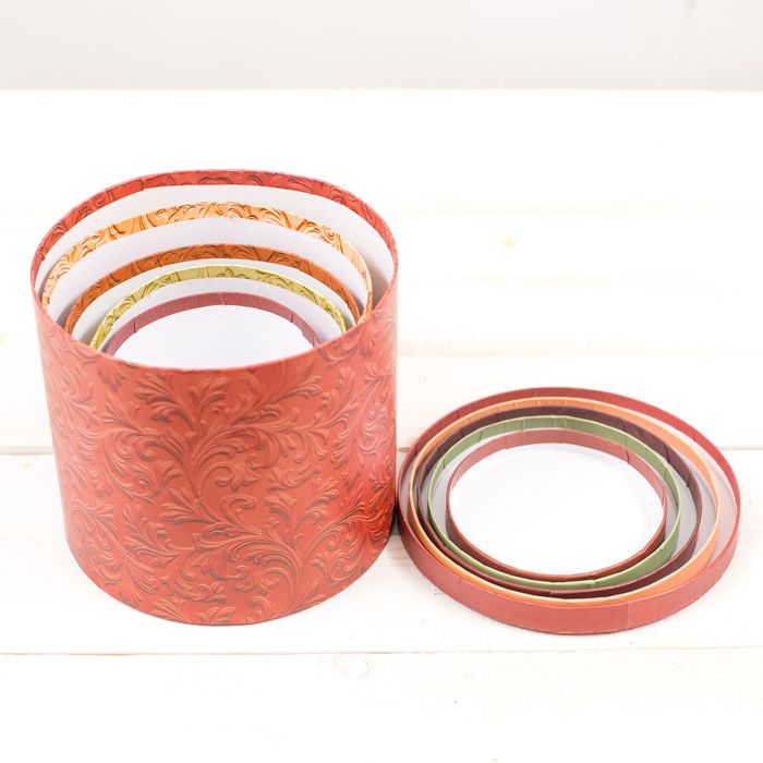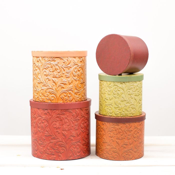 Набор коробок 5 в1 круг «Кофейные узоры», 14х14х13/ 16х16х14/ 18х18х15/ 20х20х17,5/ 22х22х19см.