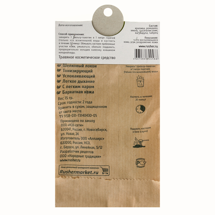 Набор косметического средства для ванн "Бархатная кожа", травяной, 3 пакетика по 5гр