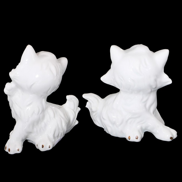 Набор «Котята», 2 шт: 8,5х5х9 см, белый с золотом, фарфор