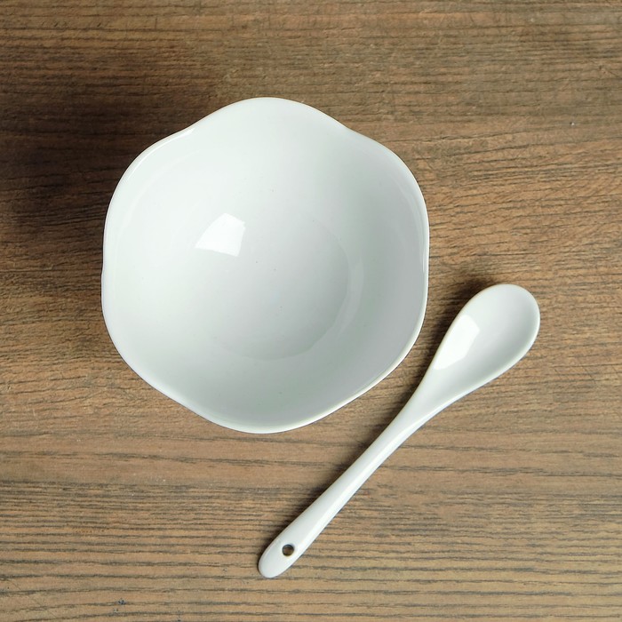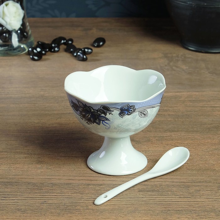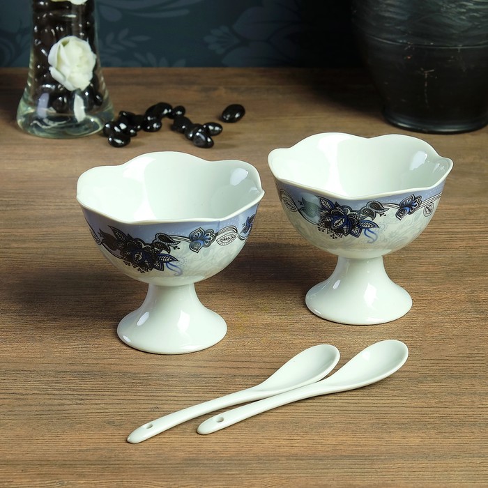 Набор креманок с ложками, креманки 2 шт 10×8.5, 0,2 л, ложки 2 шт 15×2 см, каменная керамика 38890