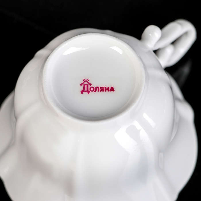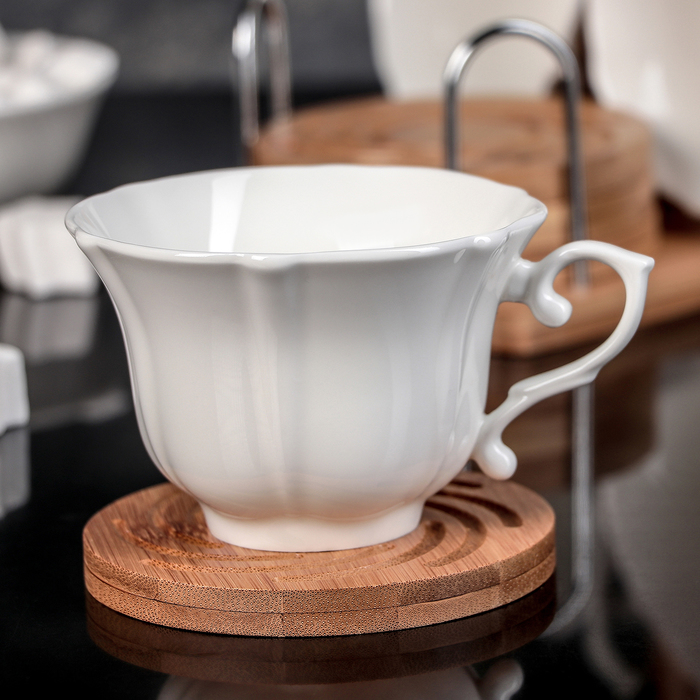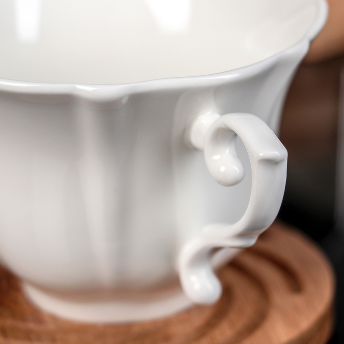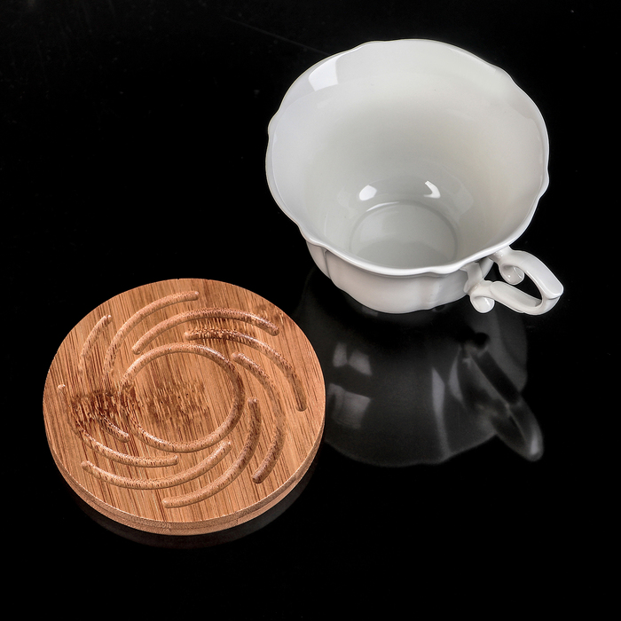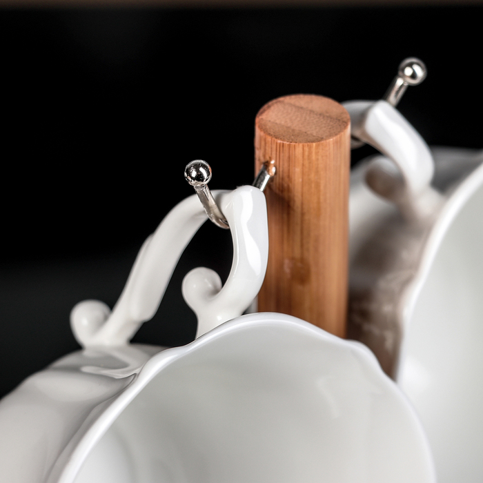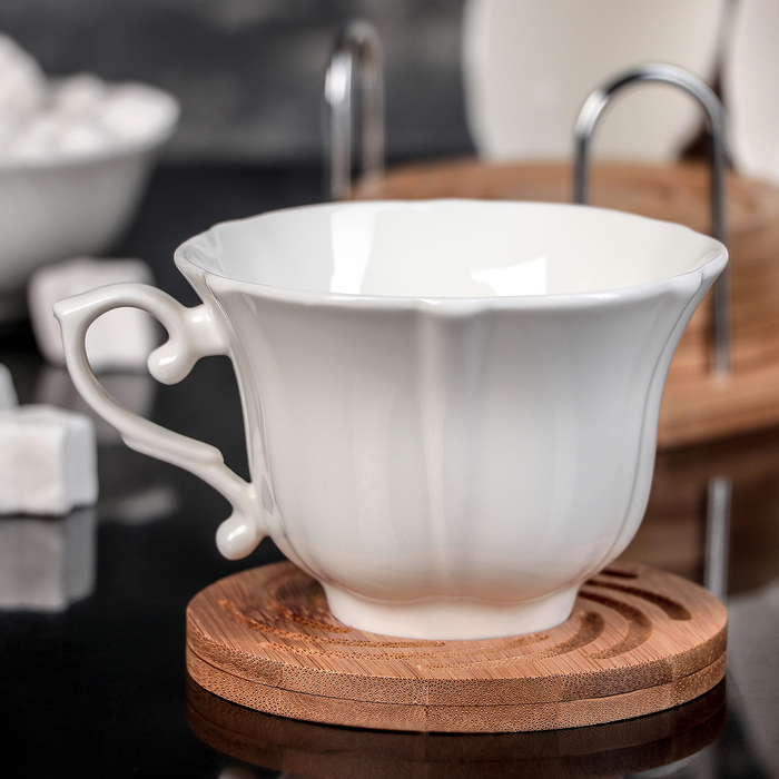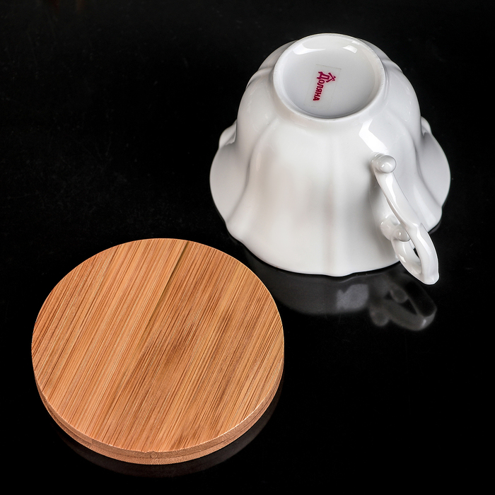 Набор кружек 180 мл "Эстет", 4 шт, деревянные блюдца, на деревянной подставке